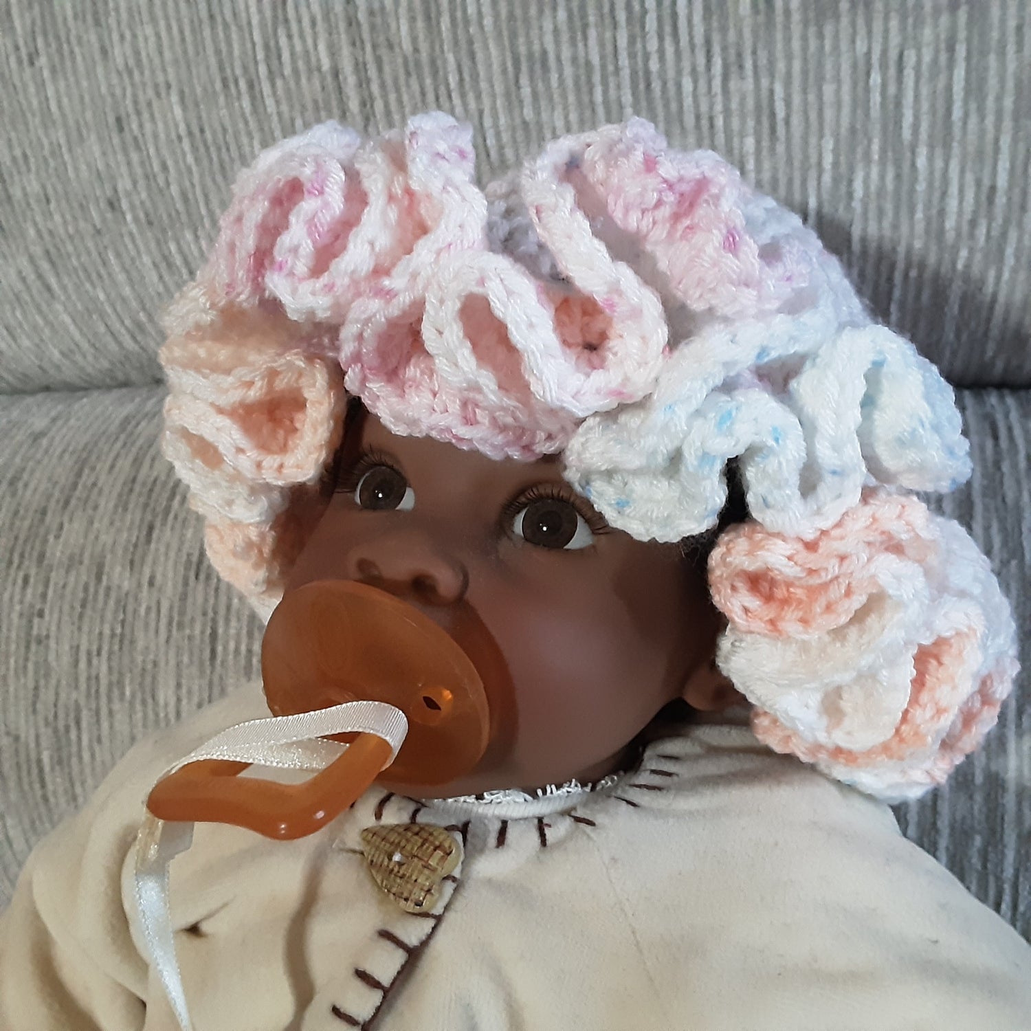 Varigated pink ruffle brim hat for 12-24 month old toddlers