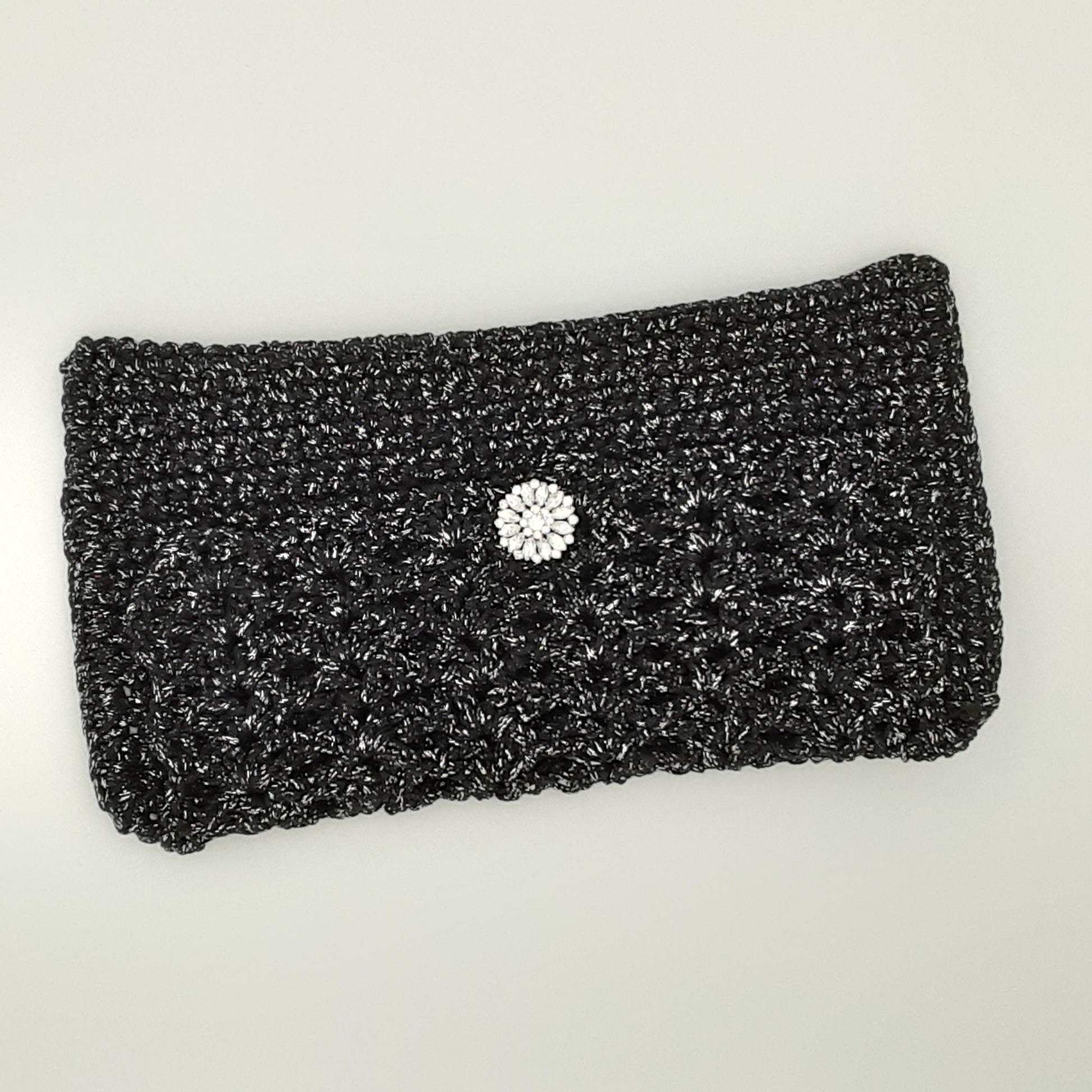 Illuminate the night with our Starry Night Clutch. This dazzling accessory features a sleek black design, adorned with glimmering glitter and a rhinestone button closure. Create a sense of shimmer and luxury with this elegant addition to your ensemble.